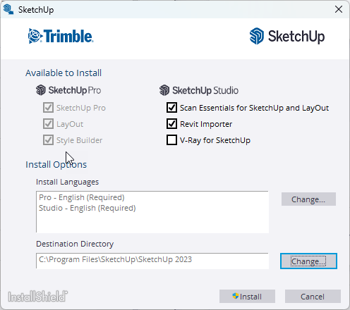 Studio是一种Windows订阅,可提供对多项功能的访问,例如V-Ray、Revit导入器和Scan Essentials。新的Windows Installer提供了这些Studio专用选项以及SketchUp Pro for Desktop,LayOut和Style Builder。