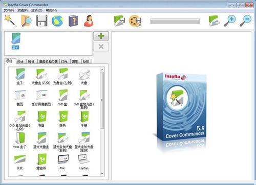 另外insofta cover commander将应用选择的风格允许通过镜头、角度、进一步、倒影和调用设置来定制你的设计,可以采用三维立体模式预览,可以被自由地旋转以达到想要的效果,最终的设计还可以被塑造成各种不同的尺寸,保存为PNG、GIF、JPG或者BMP图像格式,从而满足用户的各种需求,有兴趣的用户可以自行免费下载使用。