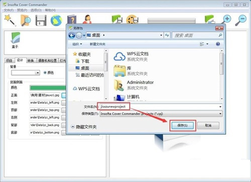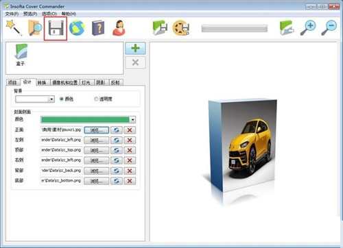 6、盒子设计好之后,点击Insofta Cover Commander顶部工具栏中的保存,就可以将项目保存起来;