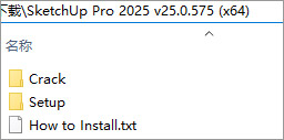 1、下载解压,得到sketchup pro 2025中文版和Crack激活补丁;
