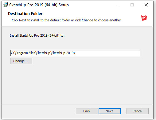 3、继续安装,默认安装目录【C:\Program Files\SketchUp\SketchUp 2019\】