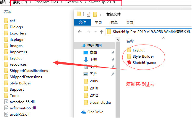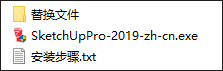 1、下载解压,得到sketchup pro 2019中文原程序和替换文件补丁;