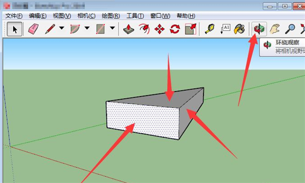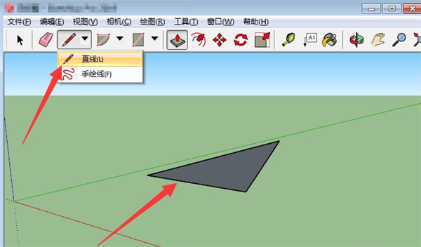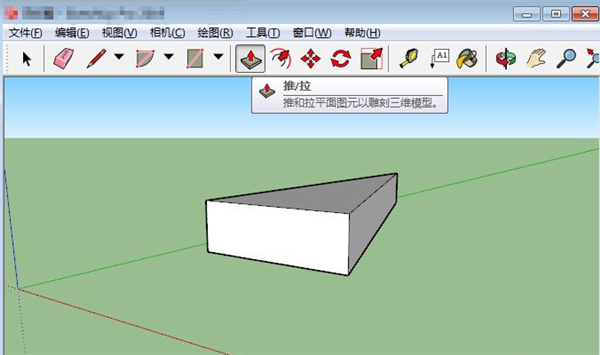 7、选择推/拉工具,点击三角形向上拉伸,这样就形成了三维图形。