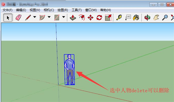 2、来到绘图界面,其中默认显示人物,选中人物delete可以删除。