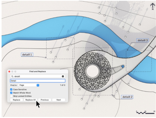 有多种方法可以在 LayOut 文档的多个页面中快速创建和复制文本。但是在整个文档中修改文本一直是一种痛苦。您需要一把细齿梳子来检查文档的每一页(和文本框)。如果您是像我们这样的效率狂人,您一定会喜欢 LayOut 中的查找和替换!使用Find & Replace,对所选内容、页面或文档中的文本进行更改是一个更快的过程。这不仅有助于加快 QA 流程,而且您可以一举更新图纸标题、页码、指定的建筑材料并修复拼写错误。