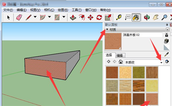 9、默认面板中材质内,选择材质和模板,点击三维图形的当前面即可完成渲染工作。