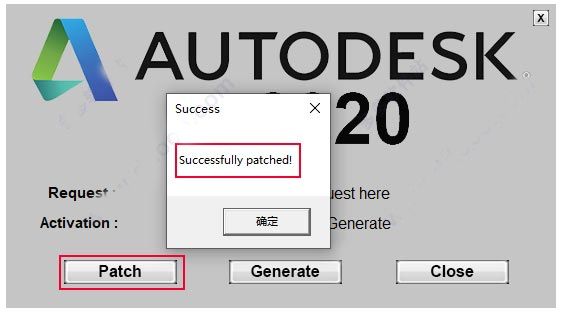 15、以管理员身份运行软件包中的“Autodesk 2020 Keymaker.exe”文件打开cad2020注册机,首先一定要先点击patch,弹出“successfully patched”才能进行下一步;
