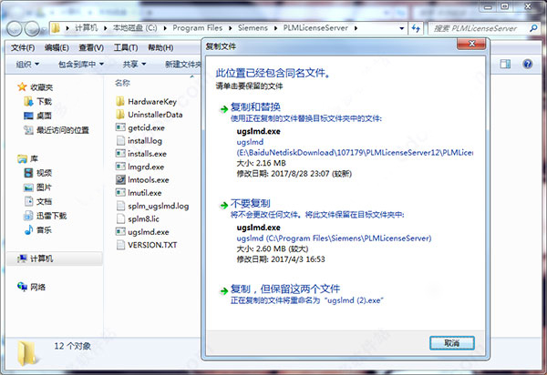5、将破解许可目录下的“ugslmd.exe”,复制到许可安装目录下覆盖源文件,默认安装目录为C:\Program Files\Siemens\PLMLicenseServer