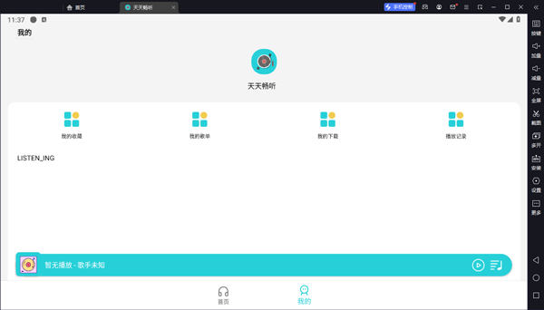 天天畅听电脑版是借助安卓模拟器而在pc端上运行的一款可以免费听歌的音乐播放器, 在这里内置了海量丰富的歌曲,内置众多实用的播放接口,不仅可以免费在线听歌,也可以下载付费音乐。同时魔音音乐app还支持无损的高质量音质,满足你对歌曲的全部需求,用好听的音乐释放你的压力。