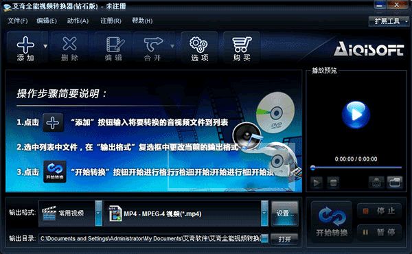艾奇全能视频格式转换器钻石版是目前网络上非常优秀的一款全能视频转换器,钻石版功能涵盖艾奇所有视频转换类产品,能够支持视频、音频、DVD所有常见格式全能转换,并且支持视频剪辑、画面裁切、外挂字幕、视频合并等操作,完美支持苹果ipad、iphone高清、mpeg2、DVD刻录、MP4、AVI、手机视频等各种设备播放的视频格式。另外本款艾奇全能视频转换器钻石版界面简洁,操作简单,软件采用了多项独家技术,支持格式多,转换速度快、输出清晰度高,更拥有强大高效的视频编码技术、让视频清晰度和转换速度完美契合,再配上完善的视频编辑功能,可以支持批量转换,视频合并、剪辑、裁切、图文水印,是你转换视频格式的好帮手,快下载体验吧。