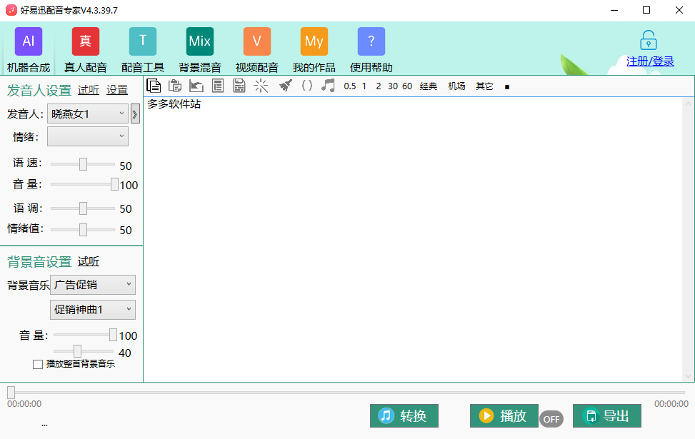 3、循环播放功能,支持将生成的语音文件进行循环播放,方便用户在不同场合下使用,用户可以根据需要设置循环次数。