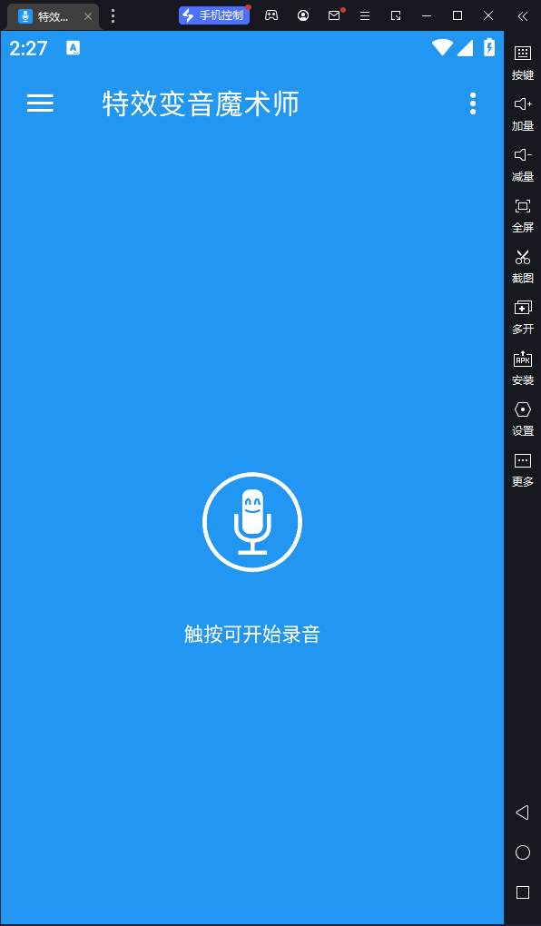 特效变音魔术师电脑版是一款借助于模拟器运行可以改变音效的软件,可以给用户提供多样化的音效选择,包括了氦气、机器人、三洞、低沉音、怪物、小精灵、外星人、骷髅、巨人等等,每个音效都是直接免费进行使用的,让你可以随心所欲选择自己喜欢的音效,而且软件的操作十分简单,可以选择触碰录音变声,也可以选择导入本地音频进行变声,满足不同用户的使用需求。