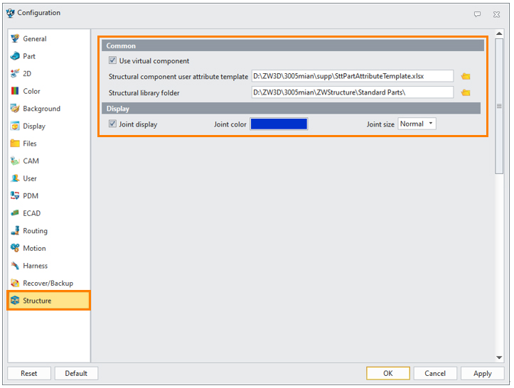 新增结构件配置项,能够设置型材的创建方式、结构件用户属性模板、结构件库以及接头显示等配置。