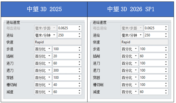 调整铣削刀具默认进给速度,贴近实际加工铣削参数。