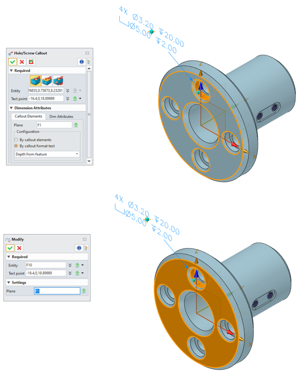 PMI的孔标注新增放置平面,支持将孔标注放置在特定平面上。右键选择孔标注,修改其放置平面。