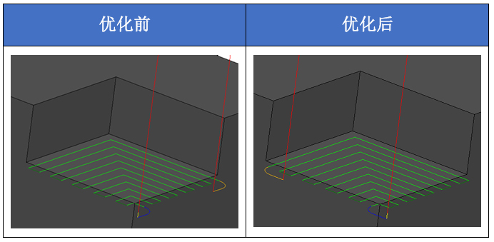 “等高外形”工序使用“往复平行”的切削方向加工开放区域时,若存在边界,则在边界处的刀轨保持顺铣,以获得更好的侧壁加工效果。