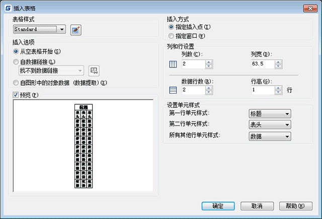 可设置表格样式、插入方式、行列、单元样式,并可在左侧的预览框中预览表格的样式。