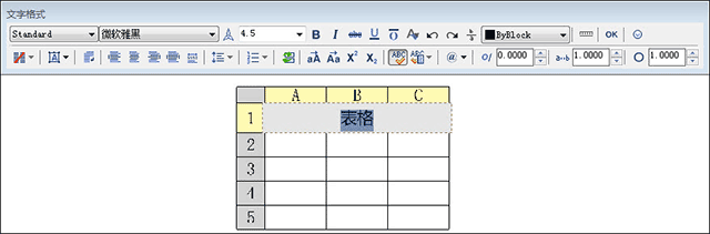 双击单元格会弹出"多行文字编辑器",可对表格填写的文字内容进行编辑。