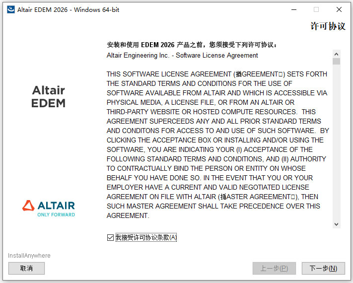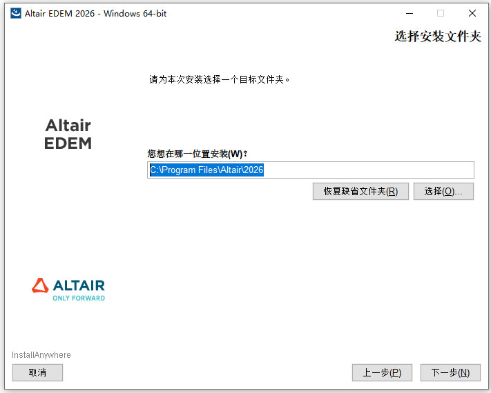4、双击AltairEDEM2026_win64.exe先安装软件,选择简体中文;
