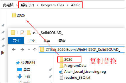 1、下载解压,得到Altair EDEM Professional 2026原程序,以及_SolidSQUAD_激活文件;