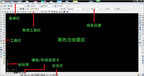 1、标题栏:标题栏位于应用程序窗口的最上面,用于显示当前正在运行的程序名及文件名等信息。可以执行最小化或最大化窗口、恢复窗口、移动窗口、关闭 AutoCAD 等操作