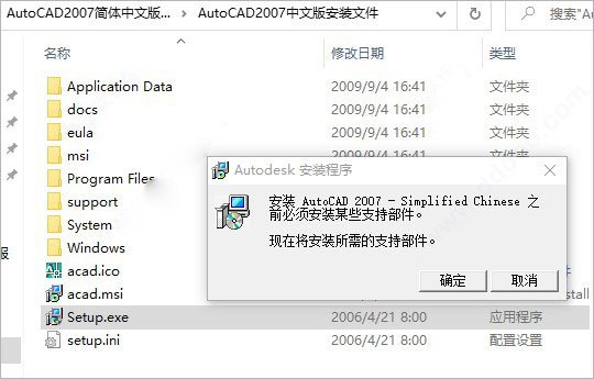 2、首先双击双击运行"Setup.exe"程序,弹出以下弹框,点击确实安装所需的支持部件;