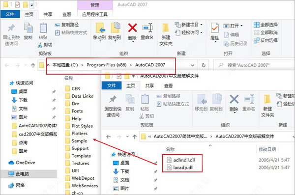 1、在本站下载解压,得到cad2007中文版安装程序和激活文件;