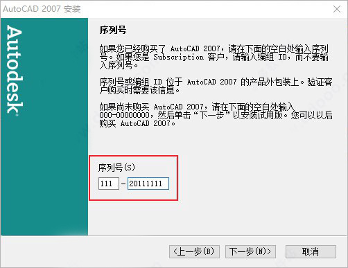 4、需要输入序列号:111-20111111,再进行下一步;