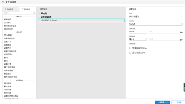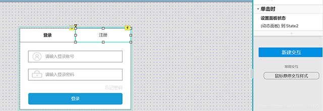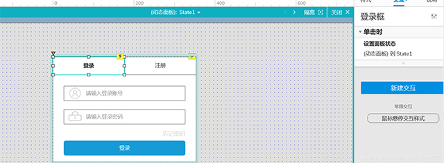 同时,在State1和State2均添加交互,当单击“登录”时,设置面板状态为State1,