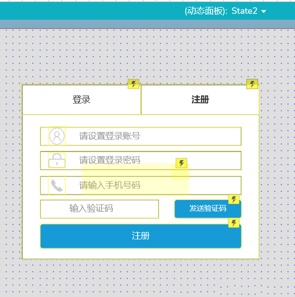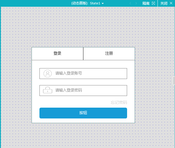 2、将“登录”元件组转换为动态面板,此时处于State1