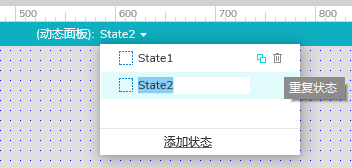 5、复制State 1.生成State 2,选择动态面板State 2,此时State 2动态面板的样式与交豆均是从1复制过来的,因此需要根据需求修改动态面板State 2下的样式和交互