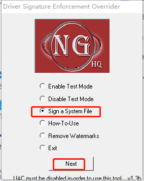 然后打开下载的driver-signature-enforcement-overrider软件,打开后点nest—yes,然后选择sign a System File