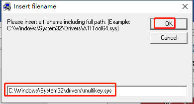 再输入C:\Windows\System32\drivers\multikey.sys,点ok