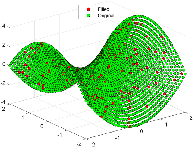 一个很有用的函数fillmissing2,可以将二维数据中NaN部分数值用周围数的插值替代