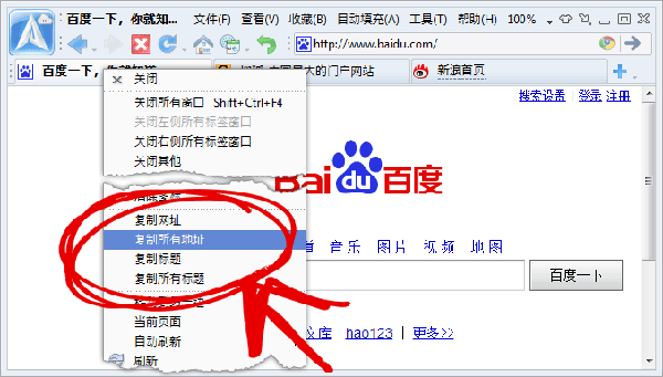 标签按钮的右键菜单为您提供更多功能,方便您管理所有标签按钮,比如关闭左侧或者右侧的所有标签。用右键菜单您还可以把所有标签的链接或者标题复制到剪切板。
