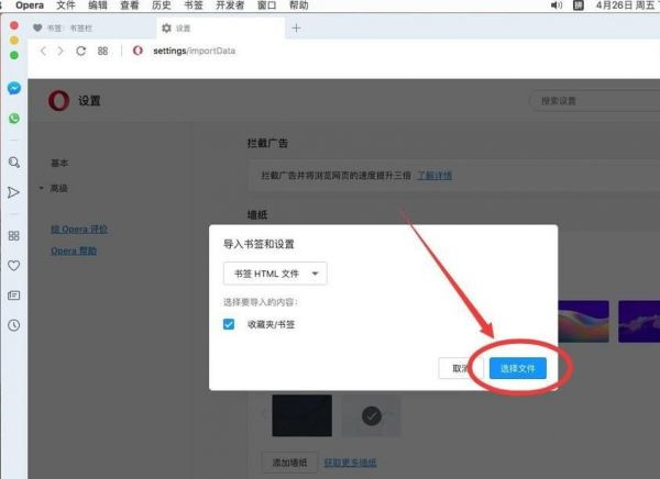 11、在弹出的对话框中,浏览找到要导入的书签,例如这里演示导入“Opera书签”这一文件;