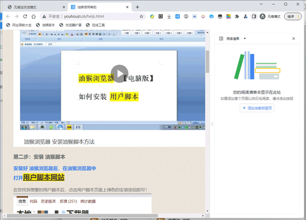 4、自带Tampermonkey油猴脚本图标,方便用户轻松点击来添加或禁用脚本。