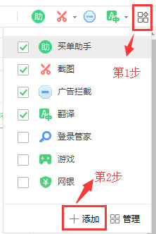 1、若扩展栏没有阅读模式时,可在360应用市场进行添加