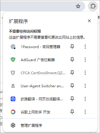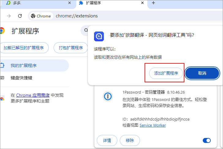 4、右上角,点击扩展程序,可以看到欧路词典插件。