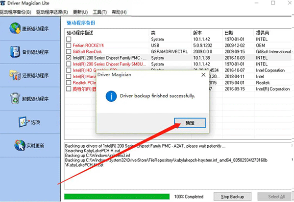 4、当弹出如下窗口时,则说明Driver Magician Lite已经将驱动程序备份好了,我们直接点击“确定”按钮即可。