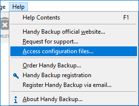 您也可以通过单击工具栏“帮助”部分中的“访问配置文件... ”选项,通过程序界面访问 Novosoft 文件夹。