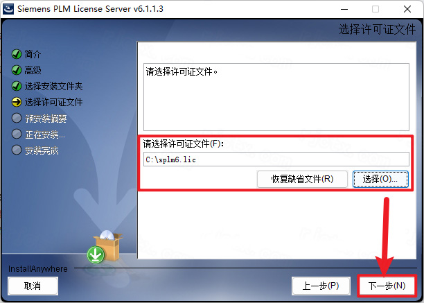 12、点击【选择】选择【splm6】文件(此文件位于C盘中),点击【下一步】