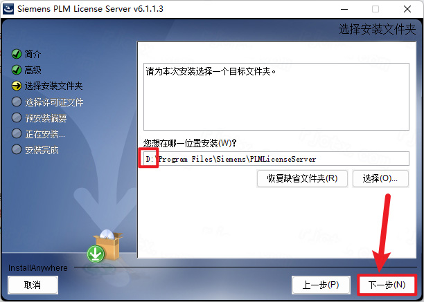 11、点击【选择】可更改安装位置(建议不要安装在C盘,可以在D盘或其它磁盘下新建一个“UG9”文件夹,注:安装路径中不要有中文),点击【下一步】
