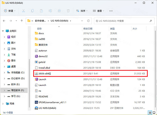 1、下载解压得到UG NX9.0中文版,右击【JAVA-x64位】选择【以管理员身份运行】