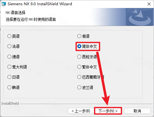 16、点击【Install NX】,选择简体中文;