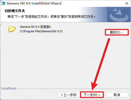 18、点击【更改】选择新建的【UG9】文件夹,