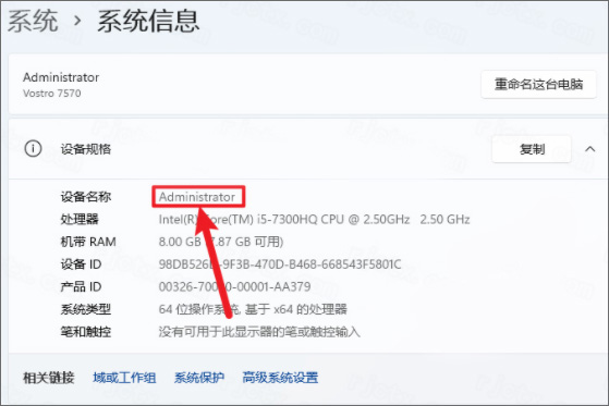 6、从红框界面可以看到电脑的设备名称