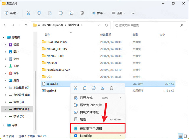 4、双击打开【splm6.lic】,选择【记事本】,点击【确定】