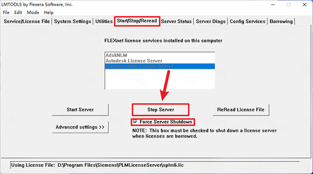 30、点击【Start/Stop/Reread】,勾选【Force Server Shutdown】,【点击【Stop Server】