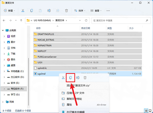 23、打开安装包解压后的文件夹中的【激活文件】文件夹,全选,复制;